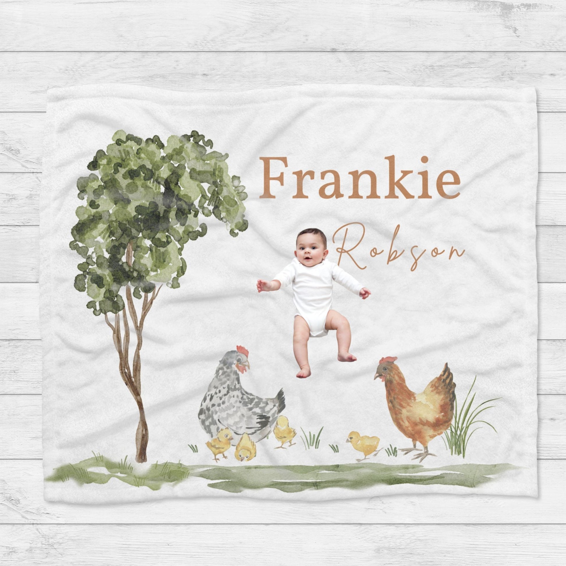 Wrap yourself in cozy comfort with our Personalised Farmhouse Chicken Blanket! Perfect for snuggling while dreaming of life on the farm, or adding a touch of country charm to your farmhouse décor. Makes a great gift for any chicken lover or farm themed nursery.